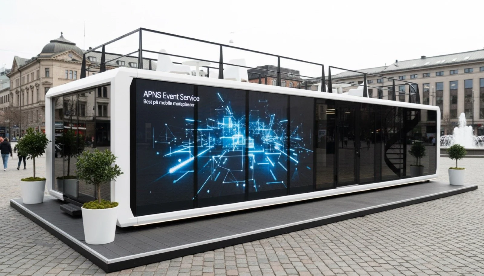 Mobile møteplasser for Europa. APNS er en del av en europeisk utleiepool for Expandable Trailers. Disse mobile møteplassene er ideelle for messer, idrettsarrangementer og roadshows over hele Europa. Løsningen gir deg hele 62 m² innendørs areal, samt 25 m² tilgjengelig på taket – perfekt for eksklusive opplevelser og synlig merkevarebygging. Expandable Trailers gjør det mulig å ta arrangementene dine hvor som helst. Trailerne er utviklet for rask transformasjon til mobil møteplass som utstillinger, roadshow messer og VIP område til idrettsarrangement.